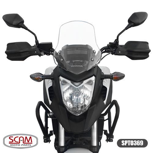 • Desenvolvido para proporcionar conforto, o protetor de mãos Scam protege as mãos do piloto do contato com insetos, cascalho, galhos, lama e afins durante o trajeto, também é capaz de absorver pequenos impactos e reduzir a chance de danos aos manetes em caso de tombos e quedas. Com design arrojado, além do conforto este acessório incrementa o visual da motocicleta sem interferir na ciclística.