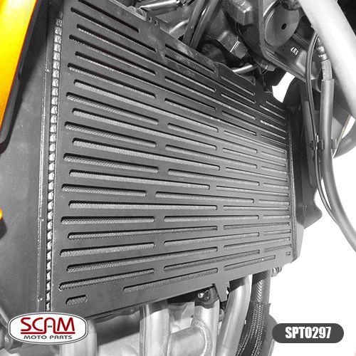 • Desenvolvido para absorver pequenos impactos e manter a integridade da colmeia do radiador em caso de contato com insetos, cascalho, galhos, lama e afins durante o trajeto da motocicleta, o protetor de radiador Scam reduz a chance de danos e eventuais furos no radiador nestas situações, proporcionando tranquilidade ao pilotar On e Off Road. Com design arrojado, além da proteção este acessório incrementa o visual da motocicleta sem redução sensível na ventilação do sistema.